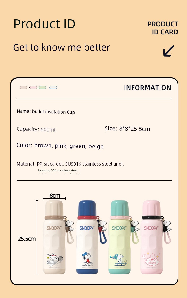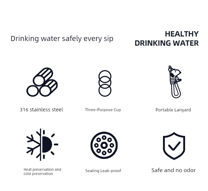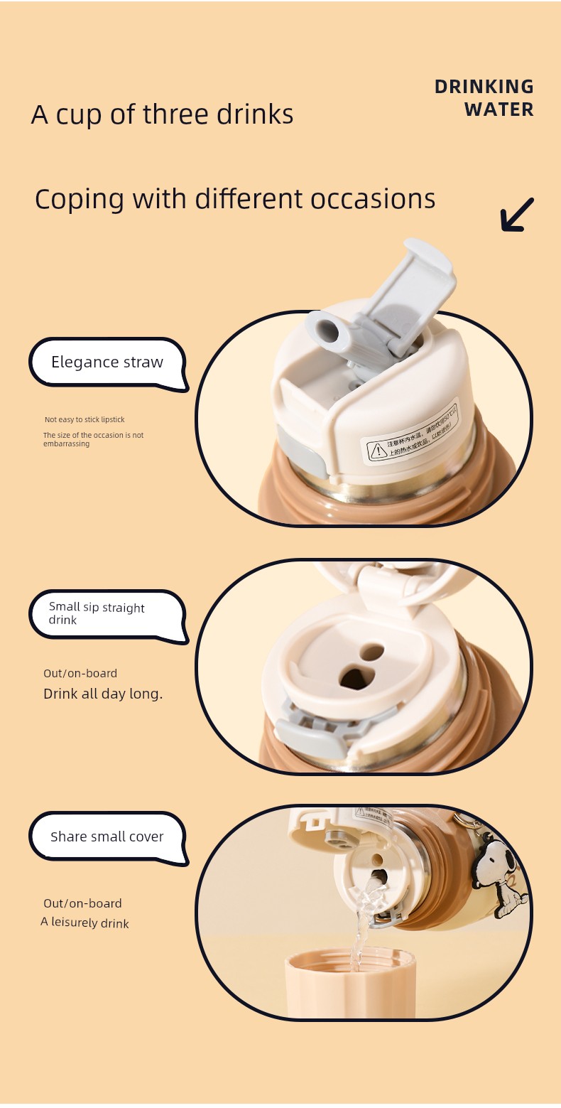 Snoopy Children's Thermos Mug Student School Dedicated Straw Cup Boys and Girls 316 Stainless Steel Water Bottle Water Cup